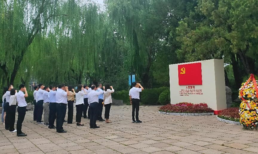 在美銘廣場,黨員干部們一同為王盡美、鄧恩銘紀(jì)念石雕獻花。隨后,由集團黨委委員、紀(jì)委書記盧剛帶領(lǐng)全體黨員干部,現(xiàn)場宣誓,重溫入黨誓詞,回顧入黨宣誓時的莊嚴(yán)承諾和堅定決心,提醒全體黨員始終不忘初心,牢記作為黨員的責(zé)任和使命,時刻以優(yōu)秀共產(chǎn)黨員的標(biāo)準(zhǔn)嚴(yán)格要求自己,遵守黨的紀(jì)律,積極投身黨的事業(yè),發(fā)揮黨員的先鋒模范作用。